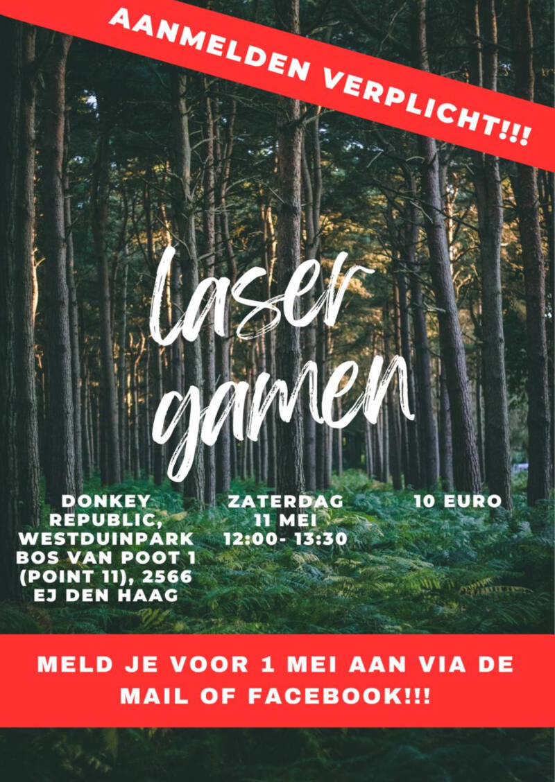 De volgende Geuzenhonk Vakantie activiteit voor alle! kinderen komt er aan. Op zaterdag 11 mei van 12u tot 13.30u gaan we Lasergamen. Kosten zijn 10 euro. Je moet je wel opgeven! voor 1 mei. Stuur een mail naar Geuzenhonk@hotmail.com of reageer via facebook.